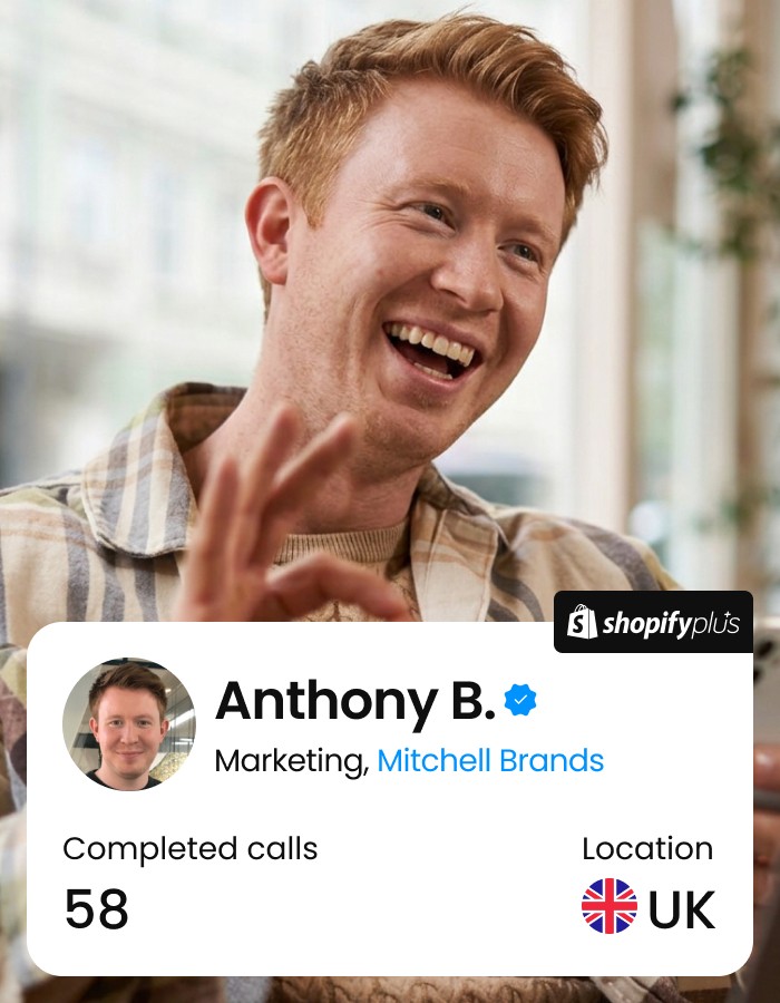 app store research helped us connect with the right people, fast. Instead of spending weeks, we were able to book interviews with Shopify merchants almost instantly."